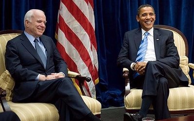 圖為:奧巴馬和麥凱恩在會(huì)晤中