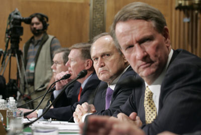 美國汽車業“三巨頭”通用、克萊斯勒和福特的首席執行官(由右至左)出席國會聽證會。
