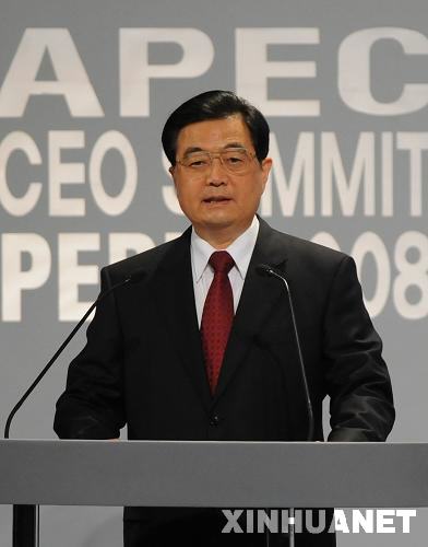 圖為11月21日,國家主席胡錦濤在秘魯首都利馬出席亞太經(jīng)合組織工商領(lǐng)導(dǎo)人峰會并發(fā)表重要演講。新華社記者李學(xué)仁攝