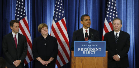奧巴馬說,他新提名的經濟團隊人選在美國經濟陷入危機的時刻提供了“可靠的判斷和不落俗套的主張”。