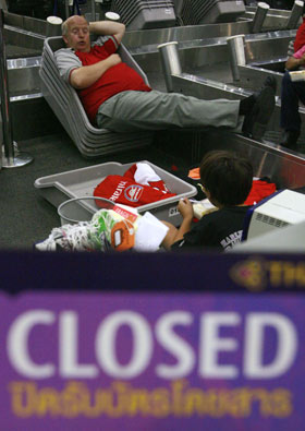 民盟支持者25日突然移師至素萬那普國際機場,并在那里舉行大規模反政府集會,要求頌猜總理領導的政府下臺。當晚,民盟成員強行進入機場乘客候機樓,使機場秩序陷入癱瘓。