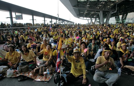 據悉,這些民盟支持者包圍機場的目的在于想要阻撓泰國總理頌猜返國,并希望藉此能迫使頌猜盡快下臺。有消息人士稱,正在秘魯參加亞太經合組織峰會的頌猜將于26日下午回國,屆時他很有可能宣布全國進入緊急狀態;但是頌猜乘坐的飛機不會降落在素萬那普國際機場,而是在烏塔堡軍事基地降落,稍后他將飛往曼谷主持特別內閣會議。