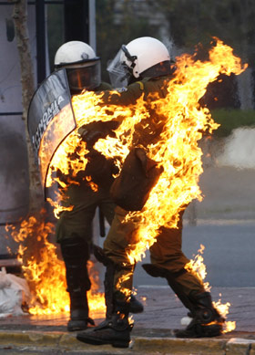 ![]() 中國日報網環球在線消息:因警察執法意外導致一名示威少年死亡而觸發的希臘大規模騷亂在持續一周后仍未見平息跡象。據英國《每日電訊報》12月13日報道,在過去幾天的對峙中,希臘警方幾乎已經用光了庫存的催淚彈,不得不向其它國家求援。除了在希臘全國蔓延,這場動蕩還隨著金融危機帶來的不安情緒波及到歐洲其它國家,甚至有歐洲“憤青”打出了“歐洲革命”口號。 ***騷亂一周 對峙繼續 12日早上,數千名示威者連續第7天在雅典市中心的議會大廈外與防暴警察對抗。有示威者向警察投擲石塊和燃燒彈,警方則以催淚彈進行還擊。一名警員在沖突中全身著火,其它警員急忙用滅火器往他身上噴射,幸好該警員沒有受傷。示威者還闖進希臘國家銀行總行,嚇得職員四處逃散。 當天,大約80名學生以和平方式占領了一個雅典電臺,并通過廣播宣讀一篇聲明,批評政界領袖至今仍未對國家的處境做出應有的反應。在希臘第二大城市薩洛尼卡,許多學校也被抗議學生占領。一些大學生還利用法律禁止警察隨意進入教育機構的規定,從大學圍墻內向警察投擲石塊。 希臘司法部門12日發表消息稱,暴亂發生后警方已經逮捕了432人,并起訴了其中的176人。除年青人的暴力行為外,掠奪行為也成為起訴對象。數據還顯示,過去一周里,警方在雅典和其它爆發騷亂的至少12個城市總共施放了4600多枚催淚彈。由于大量使用催淚彈,刺激性氣味已經擴散到了雅典市中心的地鐵站,隨處可見人們用手帕遮住口鼻的景象。目前,希臘政府已經向以色列和德國緊急求援,要求供應催淚彈應急。 這場騷亂的導火索是本月6日一名15歲的希臘少年涉嫌被兩名警察開槍打死。法庭其后證實,少年只是誤中流彈。但希臘傳媒猛烈抨擊“流彈說”,指責警方試圖抹黑死者,把死者描繪成麻煩分子,把警方的殺人行為合理化,以掩飾事件真相。 ***怒火蔓延 歐洲動蕩 不但希臘全國陷入系統性的危機之中,法國、德國、西班牙、意大利、丹麥、荷蘭和俄羅斯等國的希臘使領館也相繼遭遇示威抗議,這些聲援活動大多以青少年和大學生主導,有些甚至升級為暴力活動。 在法國巴黎,11日大約有300人在希臘大使館門外聚集,部分人與警察發生沖突,還燒毀了兩輛汽車和垃圾桶。示威者其后涌到著名的香榭麗舍大道,有人大叫:“到處都是警察,豬!”在德國柏林,也有數以百計的民眾上街游行,聲言要與希臘反政府示威者團結一致。 在西班牙,馬德里和巴塞羅那兩地11日各有200多名青年聚集在一起攻擊了銀行和商店,以此進行示威。西班牙的反全球化網站“Nodo50.org”以“國家殺人者,警察劊子手”為標題,號召民眾參加兩個城市的集會并報道現場情況,稱“我們與希臘示威隊伍在一起”。 互聯網和博客在這次希臘騷亂事件中可以說起到了很大推波助瀾的作用,將不滿情緒通過網絡在歐洲大陸迅速傳播,英國網站london.indymedia.org呼吁民眾學習希臘人上街,并刊登了題為《焚燒銀行,現在是向整個歐洲擴散革命的大好機會》的激進文章。 由于現在正值經濟衰退期,失業率節節上升,即使擁有高學歷也難以找到像樣的工作,因此很多歐洲國家的政府都擔心長期積累的社會矛盾和不滿情緒,會在希臘局勢的影響下被點燃。特別值得注意的是,青年人和學生是這場騷亂的主角,這也令人們再次回憶起了40年前席卷整個歐洲的學生反美騷亂。 (環球在線:康娟) 更多相關新聞