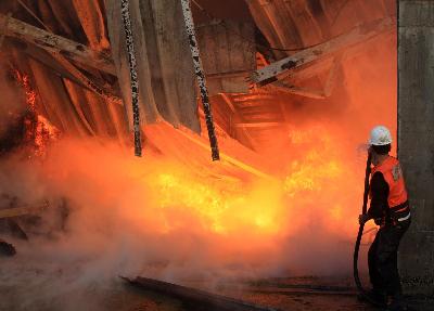 巴勒斯坦消防人員奮力滅火。(圖片來源:新華社)