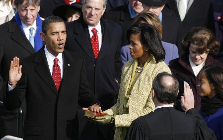 ![]() ![]() 中國日報網(wǎng)環(huán)球在線消息:據(jù)英國媒體報道,美國第44任總統(tǒng)奧巴馬美國東部時間1月20日12時左右宣誓就職,但當(dāng)時發(fā)生口誤,將一句誓詞的詞語順序念錯。21日,奧馬重新宣讀了誓詞。 美國憲法規(guī)定的總統(tǒng)宣誓就職誓詞譯成中文是:“我(某某某)謹莊嚴宣誓,我將忠實地履行美利堅合眾國總統(tǒng)之職,我將竭盡所能,恪守、保護并捍衛(wèi)美國之憲法。愿上帝幫助我。” 羅伯茨領(lǐng)誓到“我將忠實地履行美利堅合眾國總統(tǒng)之職”這句時,發(fā)生了語序錯誤。 20日,為新總統(tǒng)領(lǐng)誓的是大法官羅伯茨。奧巴馬是第一次做總統(tǒng),2005年9月成為首席大法官的羅伯茨是也第一次領(lǐng)誓,都是新手。 白宮律師發(fā)表聲明說,總統(tǒng)奧巴馬再次宣誓是“充分謹慎”的考慮。 (環(huán)球在線:霍默靜)
