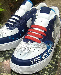 居住在華盛頓的珠寶商安·漢德日前推出了一系列與奧巴馬有關(guān)的珠寶和飾物,包括售價175美元的太陽鏡,眼鏡的邊框上鑲有用水晶拼出的“奧巴馬”(Obama)字樣。美國《時尚》雜志的編輯安德烈·利昂·托利最近一直戴著一頂花20美元買的黑色編織帽,上邊用亮石拼綴出“奧巴馬”字樣,這是他最新的時尚宣言。
