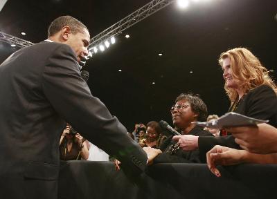 據美國有線電視新聞網報道,美國總統奧巴馬2月10日來到佛羅里達州視察。他在該州受金融危機沖擊嚴重的邁爾斯堡市舉行了有普通民眾參加的集會,以推廣他所倡議的經濟刺激方案。會上,一名61歲的名叫亨莉葉塔?休斯的黑人老婦上臺對奧巴馬動情地說:“我和我的兒子無家可歸,我們需要緊急援助。”