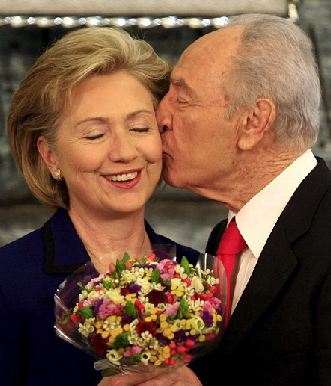 以色列總統(tǒng)佩雷斯獻花又獻吻