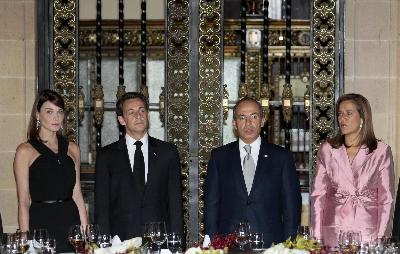 法國總統薩科齊夫婦和墨西哥總統卡爾德龍夫婦在晚宴上