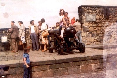 還有一張照片是22年前在一個城堡拍攝的,圖中出現(xiàn)了一個身穿制服的無頭鬼的透明輪廓(見圖二)。懷斯曼教授說:“拍照片的人完全相信,這是一個在城墻附近游蕩的無頭鬼,或許因為孩子們在大炮上玩耍惹他不高興了。但實際上這只是二次曝光的結(jié)果。”