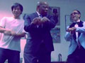 卡斯特羅(左三)與委內(nèi)瑞拉前副總統(tǒng)豪亞及豪亞下榻酒店工作人員合影。