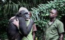 網上瘋傳黑猩猩回歸野外前與救命恩人熱情擁抱照片