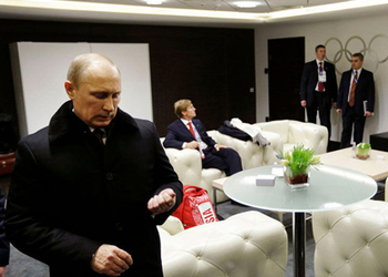 據英國《每日郵報》網站2月9日報道,美國記者拍攝的一組照片顯示,在2月7日索契冬奧會開幕式時,俄羅斯總統普京可能未看到奧運五環因故障“變成”四環的尷尬一幕。