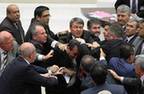 當地時間2014年1月23日,土耳其安卡拉,執政黨議員和反對派議員在議會上就土耳其現任政府的腐敗丑聞展開辯論,雙方大打出手上演“全武行”。據悉,一名反對派議員臉部遭重擊后被送入醫院接受治療。