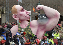 當地時間2014年3月3日,德國杜塞爾多夫,當地狂歡節巡游上推出諷刺時政巡游。