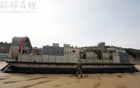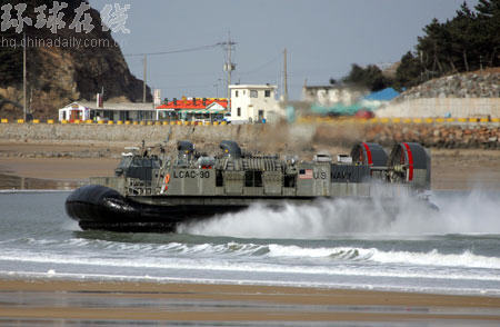 美軍氣墊船正在向海灘開(kāi)進(jìn)