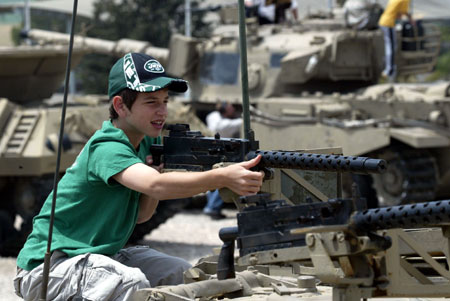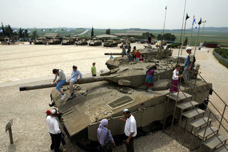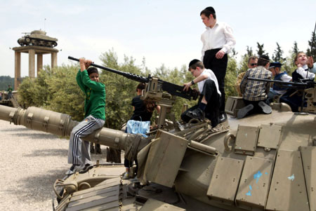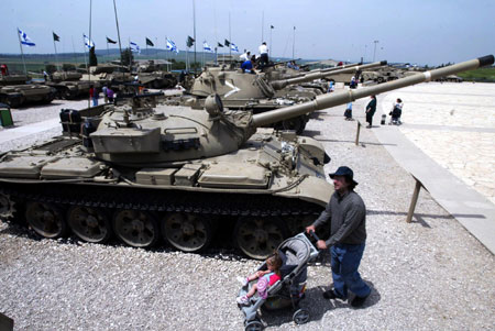 4月18日,以色列人在逾越節(jié)假期里參觀萊特龍軍事博物館。這個(gè)博物館位于耶路撒冷與特拉維夫之間的萊特龍,陳列了包括以色列著名的主戰(zhàn)坦克“梅卡瓦”在內(nèi)的各種型號(hào)的坦克和裝甲車。本月12日到19日是猶太傳統(tǒng)節(jié)日――逾越節(jié)的假期。按照以色列的規(guī)定,在法定節(jié)假日期間,所有博物館都免費(fèi)向游客開放。(圖片來源:新華社)