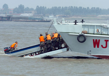 5月22日,江西武警總隊在長江進行水上實兵、實裝綜合演練,以加強水上處突、水上救援的能力。(來源:新華社)