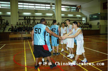 據了解,訪港美軍與駐港部隊人員進行友誼賽還是頭一趟。難怪這場歷時兩小時的精彩球賽,吸引了一群熱愛籃球的駐港部隊人員“捧場”觀看。