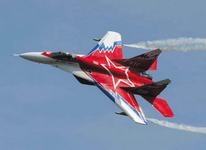 尾翼涂成紅色的俄羅斯米格-29OVT呼嘯著從跑道迅速拉起,在空中連續6次做出經典的“眼鏡蛇動作”。這個10年前在巴黎航展上讓世界驚嘆的經典動作今天看來依然令人驚心動魄。只見戰機機頭猛地昂起,在空中懸停數秒鐘,然后往前飛。