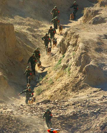 警犬分隊(duì)適時出擊,搜索逃竄的“恐怖分子”