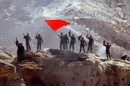 “恐怖分子”被全部殲滅后,反恐隊(duì)員為勝利歡呼