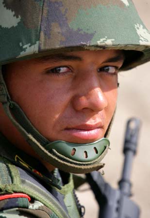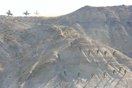 “恐怖分子”在炮火猛烈打擊下,抱頭逃竄