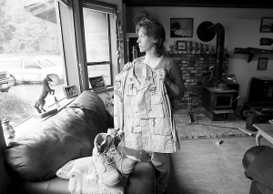 瑪麗在家中收拾自己在伊拉克戰(zhàn)場上穿過的軍裝