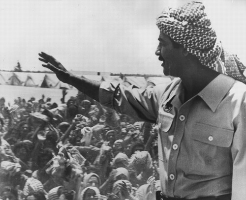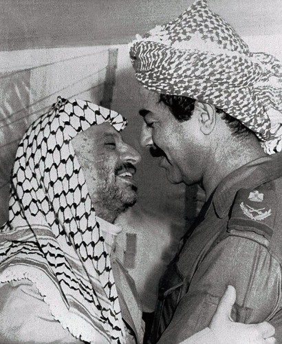 圖片說明:1980年薩達姆與阿拉法特會晤
