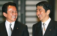 走進日本的書店,看到收款臺前堆放著的麻生太郎著《自由與繁榮之弧》時,似乎仿佛能讓人看到去年9月安倍競選自民黨總裁前,書店里堆放大量他寫作的《走向美好國家》一書的情景,看上去政局就要流轉到了一個新的時期了。