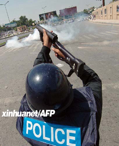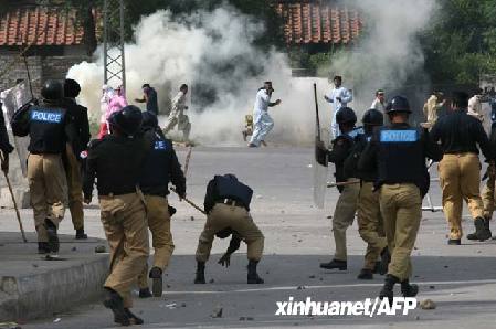 位于現場的巴基斯坦記者穆什塔克·皮拉查說:“有三名抗議者和兩名警察受傷?!?/p>