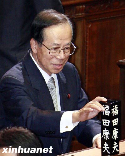 9月25日,在日本首都東京,日本自民黨新總裁福田康夫在國會眾議院的投票現場。日本國會眾議院全體會議當天下午舉行首相指名選舉。在476張有效選票中,福田康夫以過半數的338票當選新首相。新華社記者任正來攝