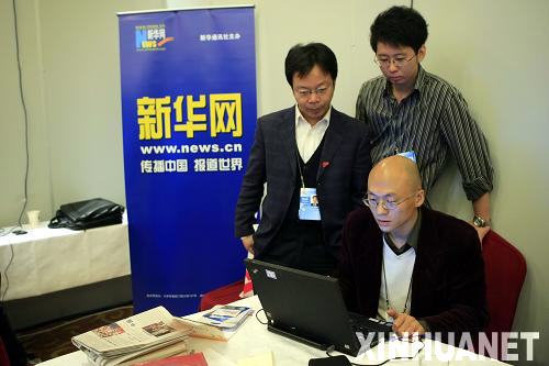 10月21日,新華網(wǎng)的工作人員在第七屆亞歐首腦會(huì)議新聞中心調(diào)試設(shè)備。當(dāng)日,位于北京國(guó)際飯店的第七屆亞歐首腦會(huì)議新聞中心正式開(kāi)放。第七屆亞歐首腦會(huì)議將于10月24日至25日在北京舉行。新華社記者魯金博攝