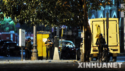 11月28日,印度安全部隊成員在孟買泰姬瑪哈酒店外與恐怖分子展開槍戰(zhàn)。 2008年11月29日印度軍方宣布在孟買泰姬瑪哈酒店的清剿行動已經(jīng)結(jié)束 新華社 王曄攝