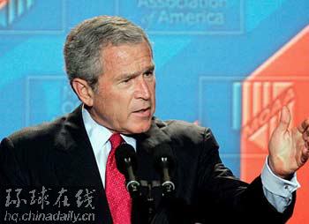 環球在線消息:針對伊朗總統內賈德上個月發表的美國必須在伊朗面前“屈服”的言論,布什回擊說:“美國不會向暴君屈服。”