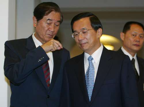陳水扁(中)今晚將以電視直播的方式回應國親提出的十大罷免理由