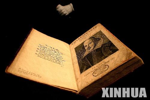 中國(guó)日?qǐng)?bào)網(wǎng)站消息:3月30日,出版于1623年的第一版對(duì)開本莎士比亞劇作集在倫敦的索斯比拍賣行展出。預(yù)計(jì)在今年7月的拍賣會(huì)上,這本書將以435萬美元到609萬美元之間的價(jià)格拍出。