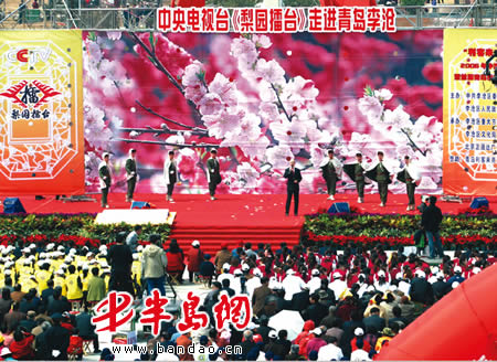 環(huán)球在線消息:4月9日上午,2006年中國青島賞花會暨首屆青島民俗文化節(jié)在李滄文化公園拉開了帷幕。央視《梨園擂臺》首次走進社區(qū),戲曲大腕讓萬余名票友過足了戲癮,各地的民俗特色小吃更是吸引了近30萬人來趕李村大集。