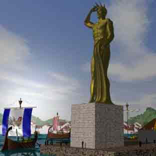 這座巨像其實是希臘人的太陽神及他們的守護神赫利阿斯(Helios),由建筑師Chares設計,以大理石建成,再以青銅包裹,及后更被用作燈塔。