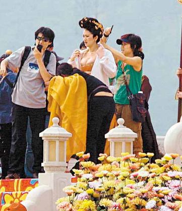 相信現(xiàn)場(chǎng)的工作人員一定很羨慕周潤發(fā),因?yàn)檫@場(chǎng)登基重頭戲,皇后與皇帝是近距離做對(duì)手戲,飾演唐朝皇帝的發(fā)哥當(dāng)然是艷福無邊。至于鞏俐的前緋聞男友張藝謀看到她的戲服如此性感,當(dāng)然更加醒神。