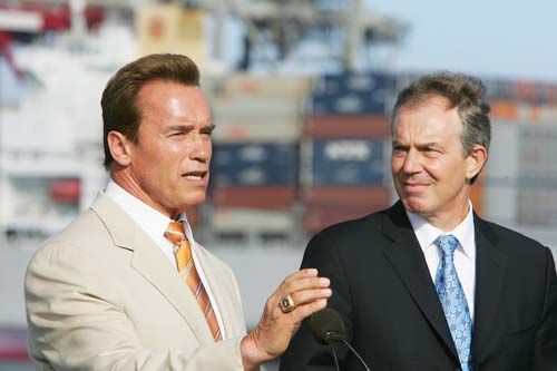 在7月31日的新聞發(fā)布會上,布萊爾卸任首相后的去向問題再次被談及。施瓦辛格給布萊爾出了個主意。他開玩笑說:“也許他會成為聯(lián)合國秘書長?誰知道呢。不過如果他想在好萊塢謀份差事,我倒樂意幫忙,比如推薦他出演《終結(jié)者4》。”