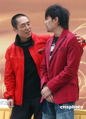 3月21日,張藝謀新片《滿城盡帶黃金甲》在北京舉行第二次新聞發布會,專門安排上周進組的周杰倫與記者見面。 (中新社發 韓藝冰 攝)