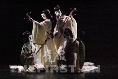 環(huán)球在線消息:隨著一段由弱到強(qiáng)的優(yōu)美旋律在黑暗中響起,幾個身著和服的妙齡女郎打著粉色的紙傘,踩著小碎步,裊裊婷婷走上臺前,身后5個戴著面具的琴師沉醉地緩緩奏出流水般的音樂……浙江小百花越劇團(tuán)力推的“青春偶像劇”《春琴傳》,昨晚在首都劇場亮相。