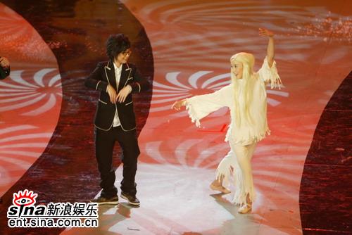 周筆暢演唱《白毛女》時,舞池中翩翩起舞的“喜兒”是2006年《舞林大會》季軍胡靜。表演結束后,兩人一同登臺串場,周筆暢羨慕胡靜舞技精湛的同時,不慎露出口風:“我小時候也學過芭蕾。”此言一出,筆迷陷入瘋狂,尖叫著要求偶像來一段。可愛的筆筆吐舌嘟噥了聲“早知道我不說出來了”,還是乖乖跟著胡靜表演了幾個芭蕾基本手位,雖然不是特別熟練,倒也有板有眼,讓筆迷尖叫連連。主持人問她是否有意參加今年的《舞林大會》,筆筆老老實實地說:“我有想過啊,就是一直沒想好到時候該穿什么服裝。”筆迷則興奮地大叫:“筆筆!國標!恰恰!”