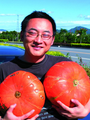 園子的果實品種不算少,有桃、杏、草莓,還有甜瓜也正“待嫁”大棚中。它們大小不等地躺在瓜地里,小的裹著白霜似的茸毛,大的已經透著油亮。在大棚里轉來轉去之時,偶爾也能在其間發現一兩個已經成熟的瓜。