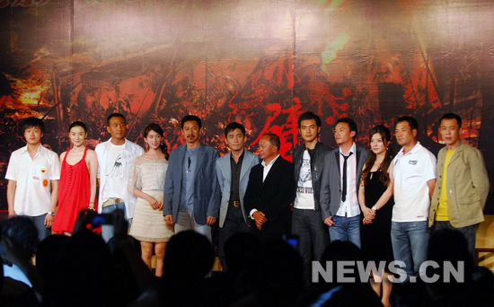 中國日報網環球在線消息:電影《赤壁》首次全球新聞發布會10日下午在北京舉行,導演吳宇森和梁朝偉、金城武、林志玲等片中主要演員一起亮相,與來自全球各地的300多家媒體記者見面。