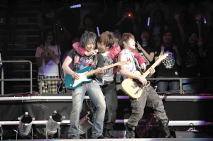 上月底,五月天前往日本宣傳,不僅獲得了日本MTV音樂錄影帶大獎授與的“大中華最佳藝人獎”,在當地舉行的歌友會和演唱會都大獲好評,這也是對他們出道10年來對音樂堅持的最好肯定。而廣州作為冰純嘉士伯年度現場音樂會的重要一站,五月天攜帶著獲獎的榮耀為廣州樂迷帶來年輕、時尚、瘋狂而有活力的音樂。
