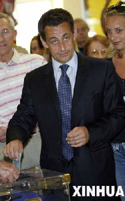 4月22日,在法國首都巴黎附近一投票站,法國執(zhí)政的人民運動聯(lián)盟總統(tǒng)候選人薩爾科齊在投票。法國當天舉行總統(tǒng)選舉第一輪投票