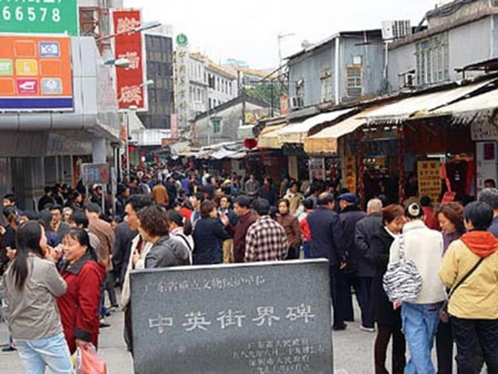 中國日報網環球在線消息:中英街可能是世界上最短,承載的歷史信息卻最為豐富的一條街了。這條長約250米,寬不足4米的小街“一街兩制”,曾經連接著內地與香港,社會主義和資本主義兩個不同社會制度的世界。而在很多普通中國人的記憶里,這個號稱“一街兩制”的地方或許只是一段瘋狂購物的經歷。隨著1997年香港回歸,香港對內地游客開通自由行,中英街的特殊涵義和購物差價優勢喪失殆盡。2006年4月,深圳一側的130家店鋪選擇了集體關張,這意味著“中英街”,這條位于深圳市沙頭角的小街已經完成了它的使命。