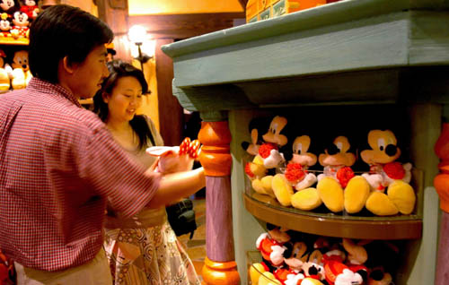 5月1日,來自各地的游客在迪士尼樂園選購紀念品。當日,香港迪士尼游客如織,香港迪士尼推出一系列精心設計的游樂項目,以吸引更多游客。